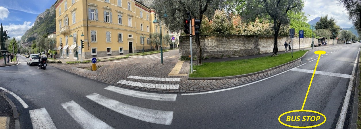 quindi autobus per Riva del Garda (fermata di fronte alla stazione)